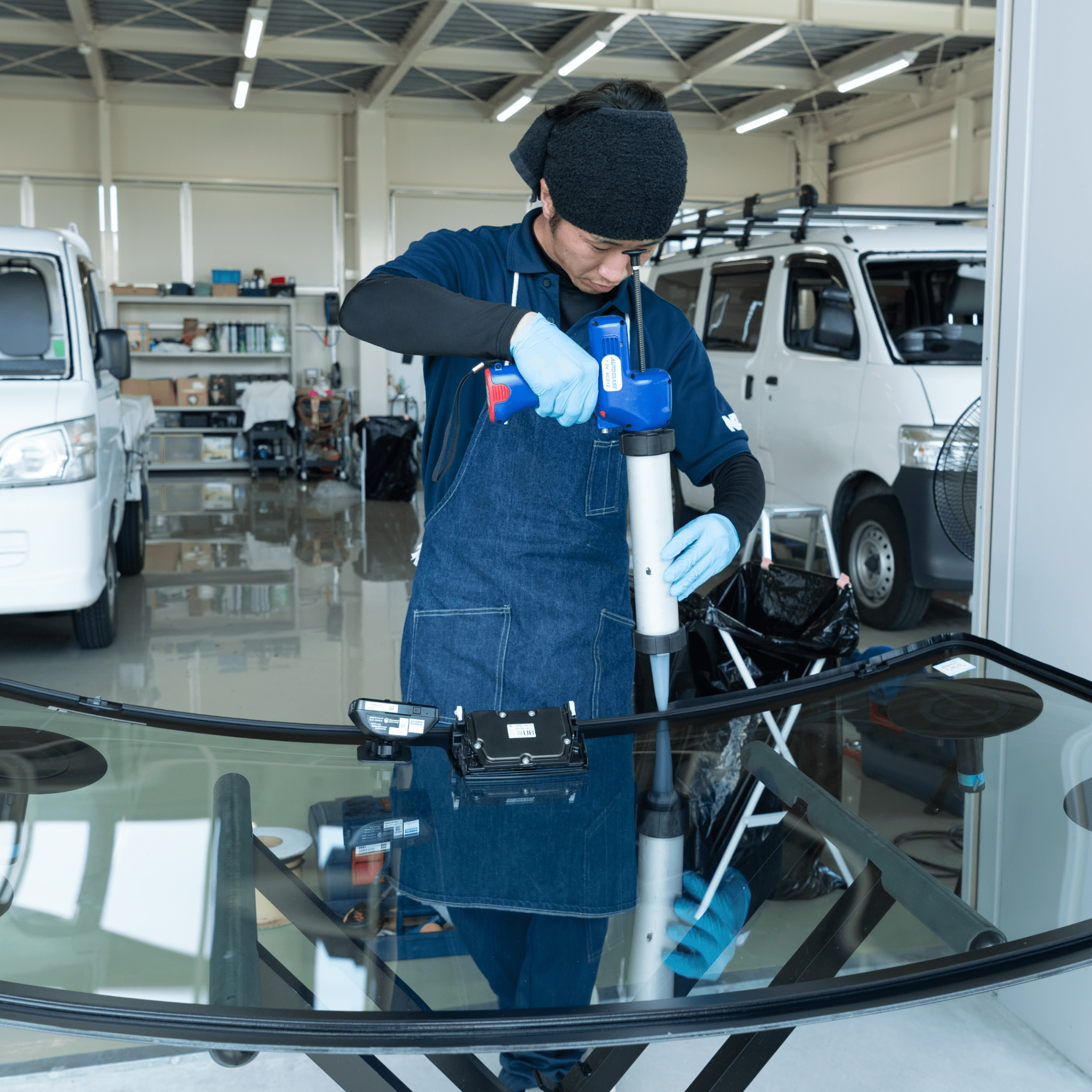 今までディーラーでしか行えなかったエーミング作業をガラス交換と同時に行うことで、入庫から納車までワンストップでスピーディーに対応可能です。