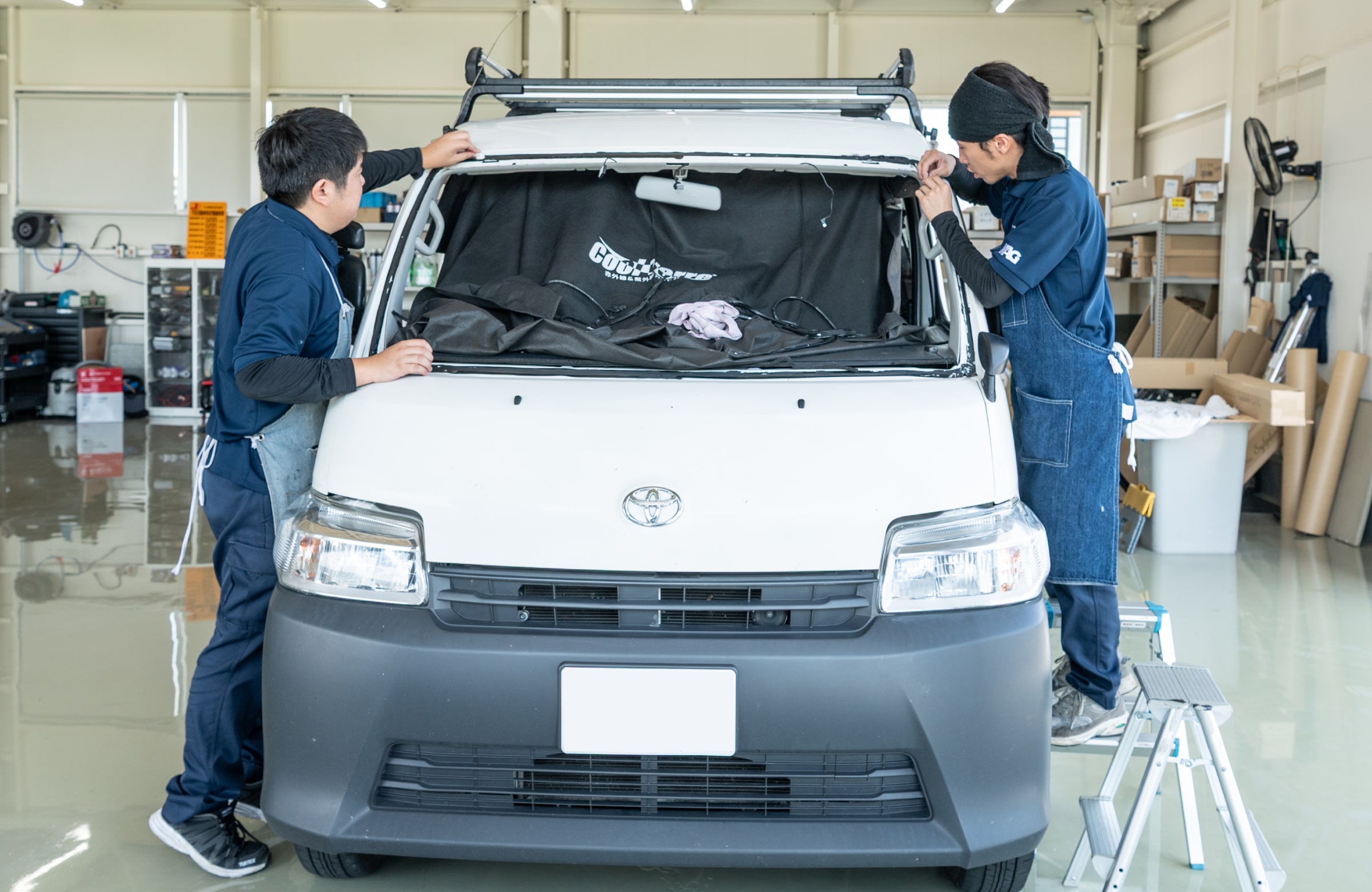 カーディーラーで頼むと、作業自体を下請けの整備工場やガラス工場に依頼するので、中間マージンが発生しますが、当店は施工まで一貫して対応するので、その分お安くなります!