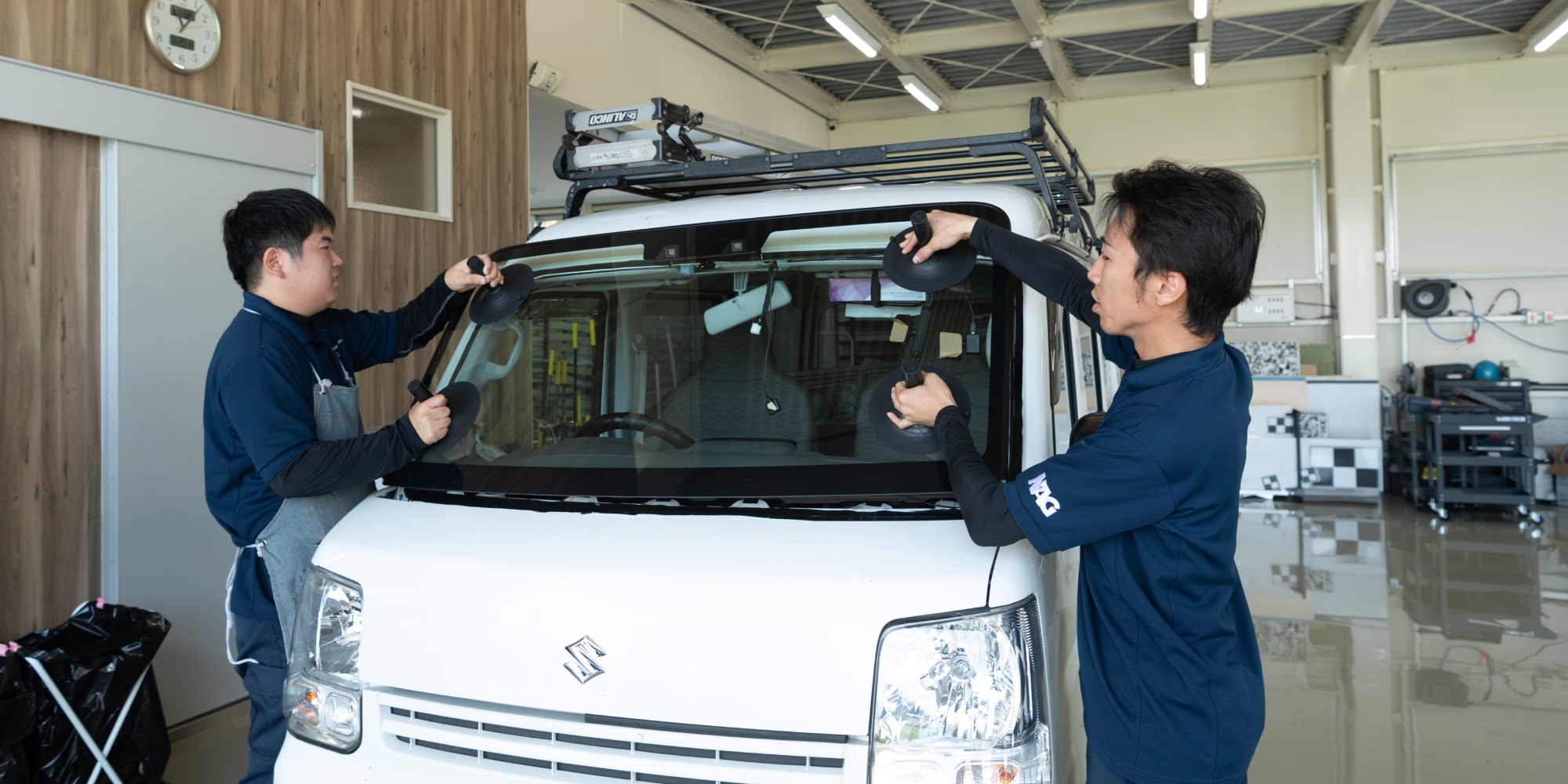 使用するガラスはメーカー純正ガラスから、国産ガラスメーカー製の国産優良フロントガラス、断熱や撥水などの高機能ガラスまで幅広く取り扱いをしています。